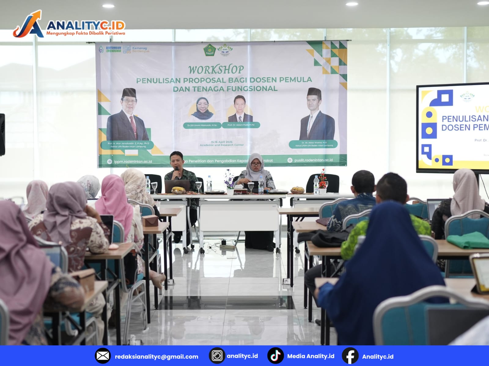 Bandar Lampung, Analityc.id – Pusat Penelitian Lembaga Penelitian dan Pengabdian kepada Masyarakat (LP2M) Universitas Islam Negeri (UIN) Raden Intan Lampung (RIL) menggelar Workshop Penulisan Proposal bagi dosen pemula dan tenaga fungsional, Kamis (16/04/2026).