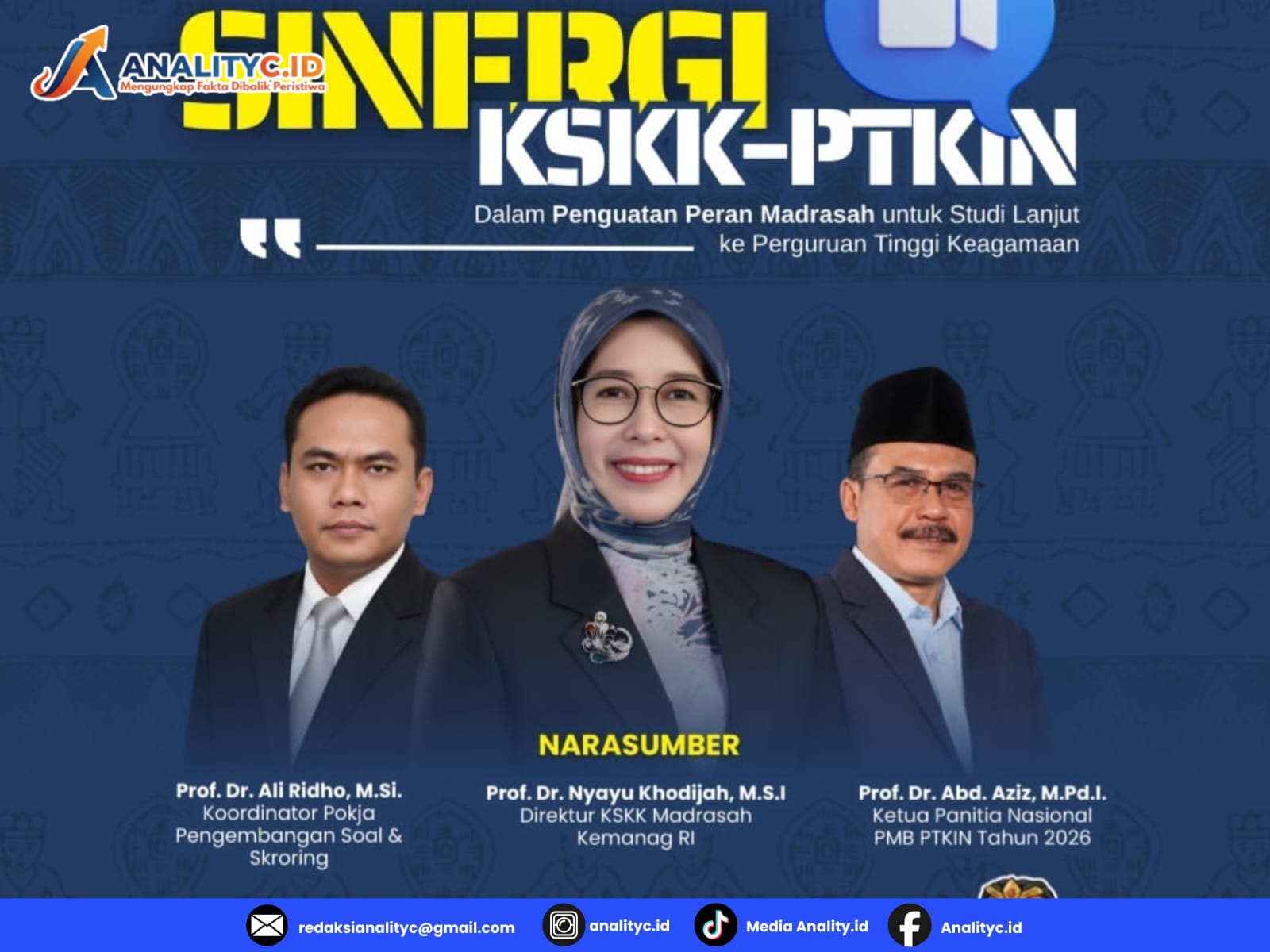 Kegiatan ini menghadirkan para narasumber nasional yang berkompeten di bidangnya, yakni: