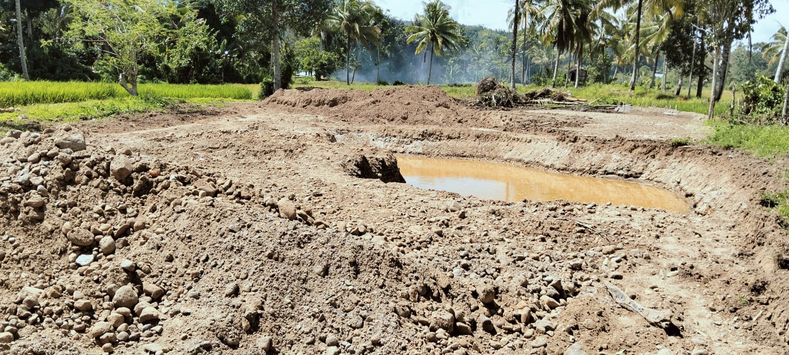 Saat ini dilokasi tersebut tampak sepi tidak ada kegiatan, alat berat pun sudah tidak terlihat lagi. Hanya ada bekas galian yang terlihat seperti kolam dan badan jalan selebar 4 meter dengan panjang kurang-lebih 70 meter. Senin (1 Desember 2025).
